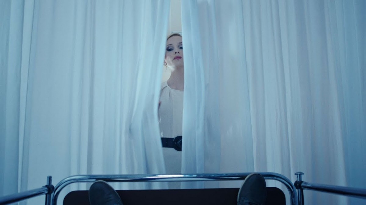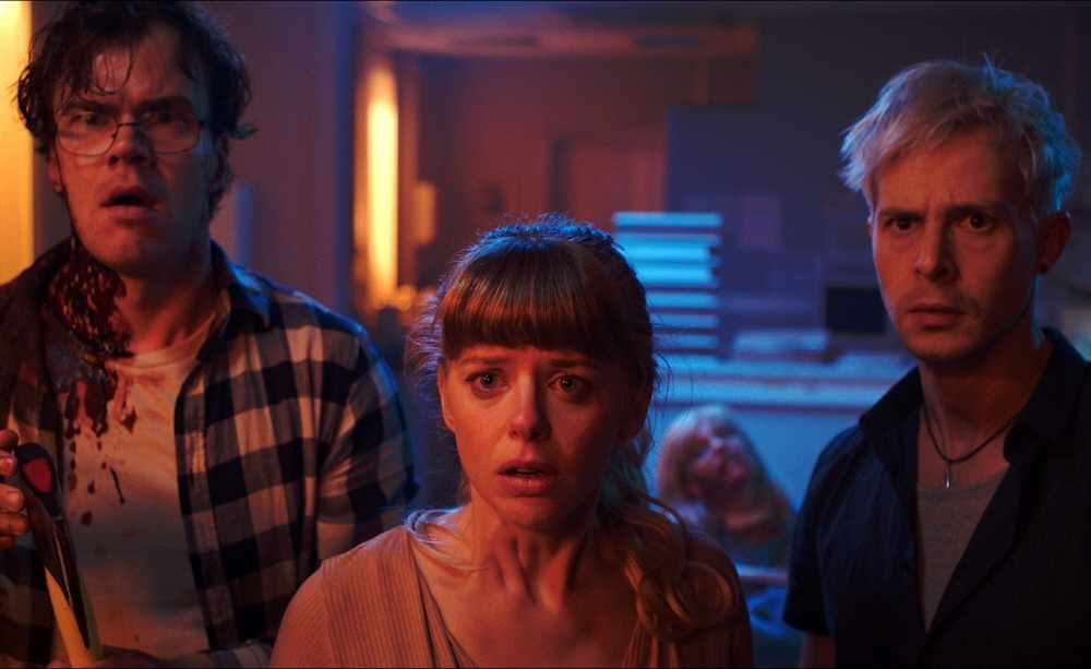 Self-conscious Alison (Maaike Neuville) is sick of having eyes glued to her F-sized breasts, so she schedules an appointment at a seedy Eastern European hospital for reduction surgery. Her supportive boyfriend Michael (Bart Hollanders) tags along, despite being a one-year medical school dropout thanks to his Hemophobia (fear of blood). Michael is less than impressed by the facility’s practices, especially when he stumbles upon an infected patient who appears to be in restraints. Er, used to be in restraints until Michael frees Dr. K’s (Eric Godon) pet project, thus unleashing a zombie pandemic inside the (sort of) sterilized building.