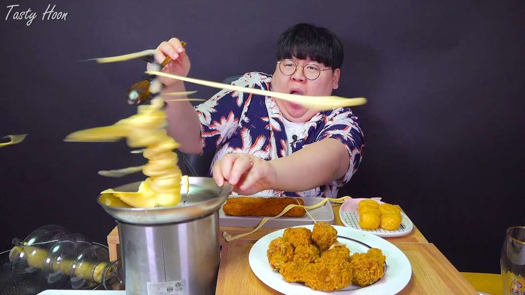 The South Korean YouTuber's videos are categorized as ASMR mukbang , a blend of two genres intended to soothe the viewer. In his first videos he eats food like king crab and BBQ maple butter garlic chicken, but it's his most recent upload, where he eats cheese fondue chicken, that made him an internet sensation.