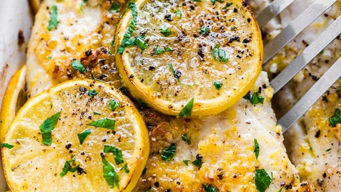 Thinly slice the zested lemon and place the slices in the bottom of a greased baking dish. If there are extras, save them for the top of the fish.